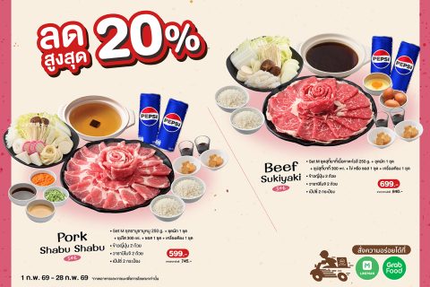 สุกี้ยากี้ ชาบู ชาบู ปิ้งย่างอะคิยากิ ซูชิ และอาหารญี่ปุ่นอีกมากมาย