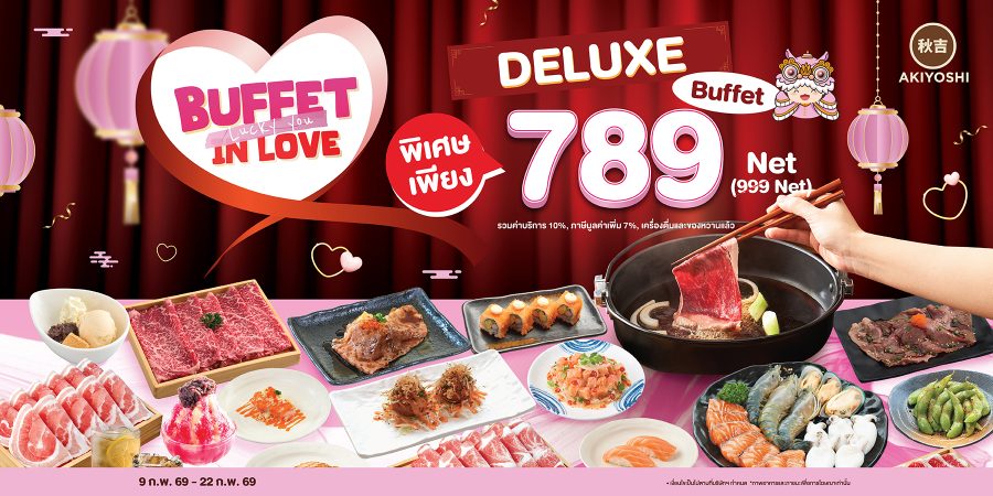💕เดือนแห่งความรักทั้งที ร้านอะคิโยชิขอแจกความรัก…เสิร์ฟความคุ้ม ด้วยโปรโมชั่น Buffet in Love แพ็กเกจ Deluxe Buffet เหลือเพียง 789 บาทเน็ต/ท่าน (จากปกติ 999 บาทเน็ต) อร่อยจุใจไปกับไลน์อาหารจัดเต็ม! ไม่เป็นสมาชิกก็รับสิทธิ์ได้เลย😋