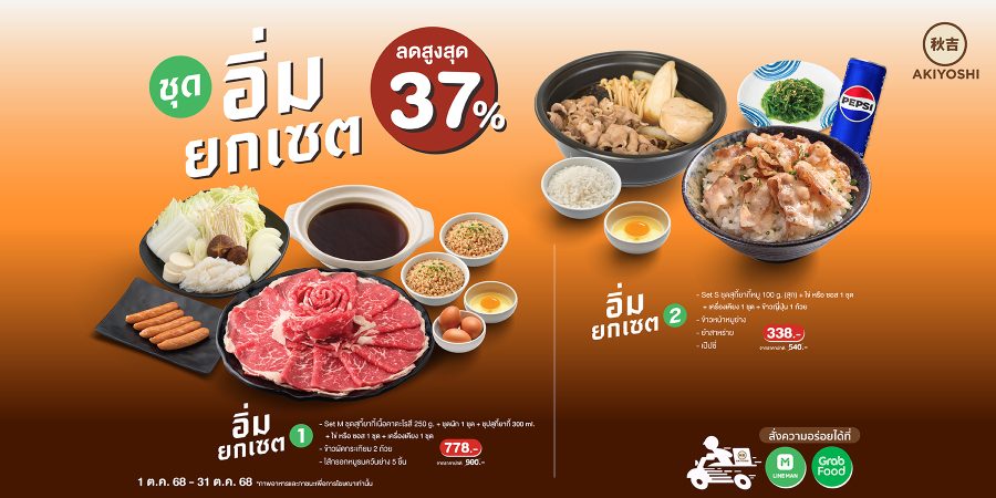 เมื่อสั่งผ่านบริการ Delivery GrabFood หรือ Line Man อิ่… Read More อร่อยคุ้ม…ชุด อิ่มยกเซต ราคาพิเศษ ลดสูงสุด 37%