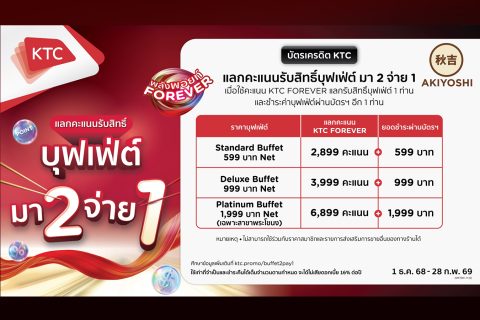 ลูกค้า KTC ใช้คะแนนแลกบุฟเฟต์ มา 2 จ่าย 1