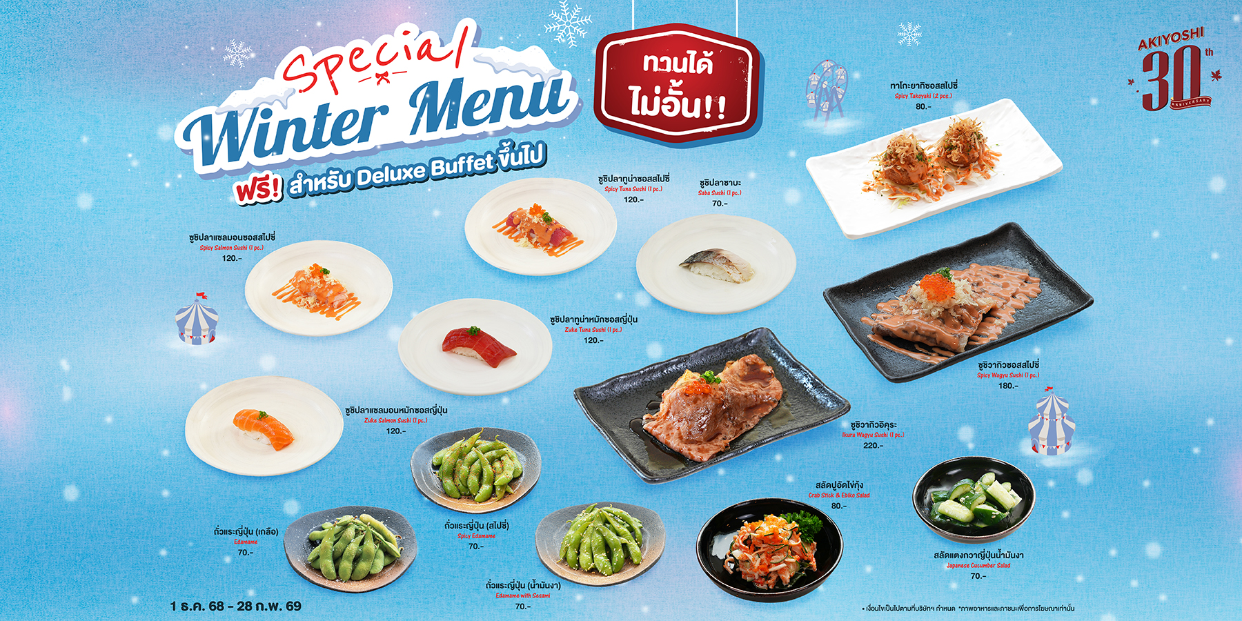 ❄️ เทศกาลฤดูหนาวเริ่มแล้ว~ ชวนกันมาอร่อยสุขล้นแบบไม่อั้นกับ 13 เมนู Special Winter Menu ฟรี! เมื่อทานแพ็กเกจ Deluxe Buffet ขึ้นไป